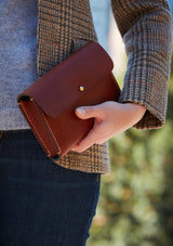 Simple elegant clutch that fits perfectly into the palm of your hand. Front flap opens to reveal plush goat suede lining. Sized for just the essentials. A great style investment because you'll carry it for years to come.