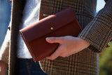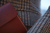 Materials: European bridle leather, goat suede, linen thread, brass.