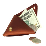 Fun triangle-shaped coin purse opens from both sides. This style suits folded bills, receipts and a handful of coins.